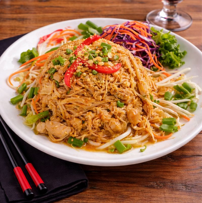 Nouilles Pad Thaï Nouilles de riz sautées avec poulet de grain et œuf battu, fèves germées, échalotes, piments rouges, sauce satay et arachides moulues Rice noodles sautéed with chicken and egg, bean sprouts, red peppers and ground peanuts in a satay sauce À LA CARTE 24,95 TABLE D’HÔTE 38,95