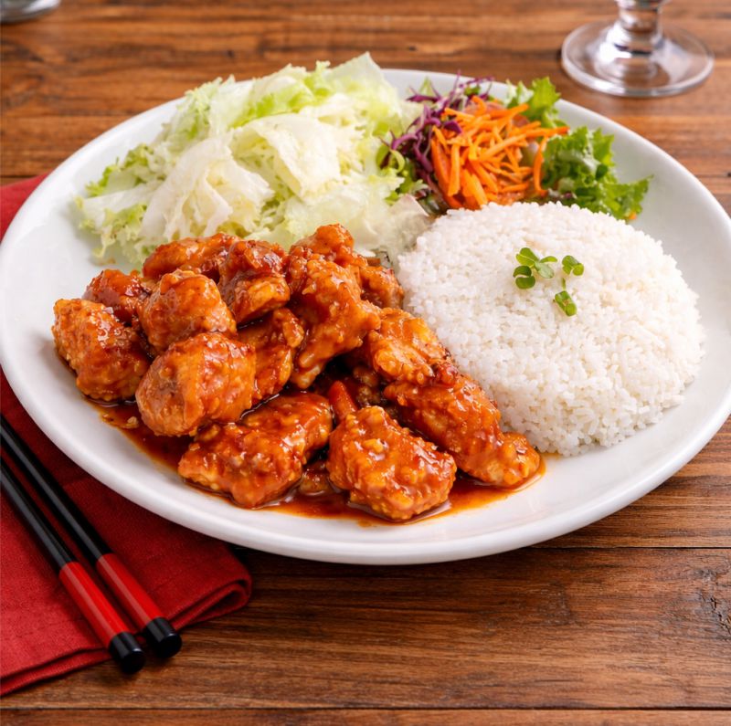 Poulet du GénéralTao Morceaux de poitrine de poulet de grain, panés, sauce cantonaise sucrée Tender fried chicken with sweet Cantonese sauce À LA CARTE 24,95 TABLE D’HÔTE 38,95
