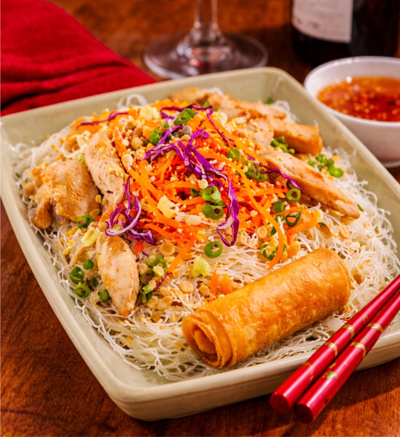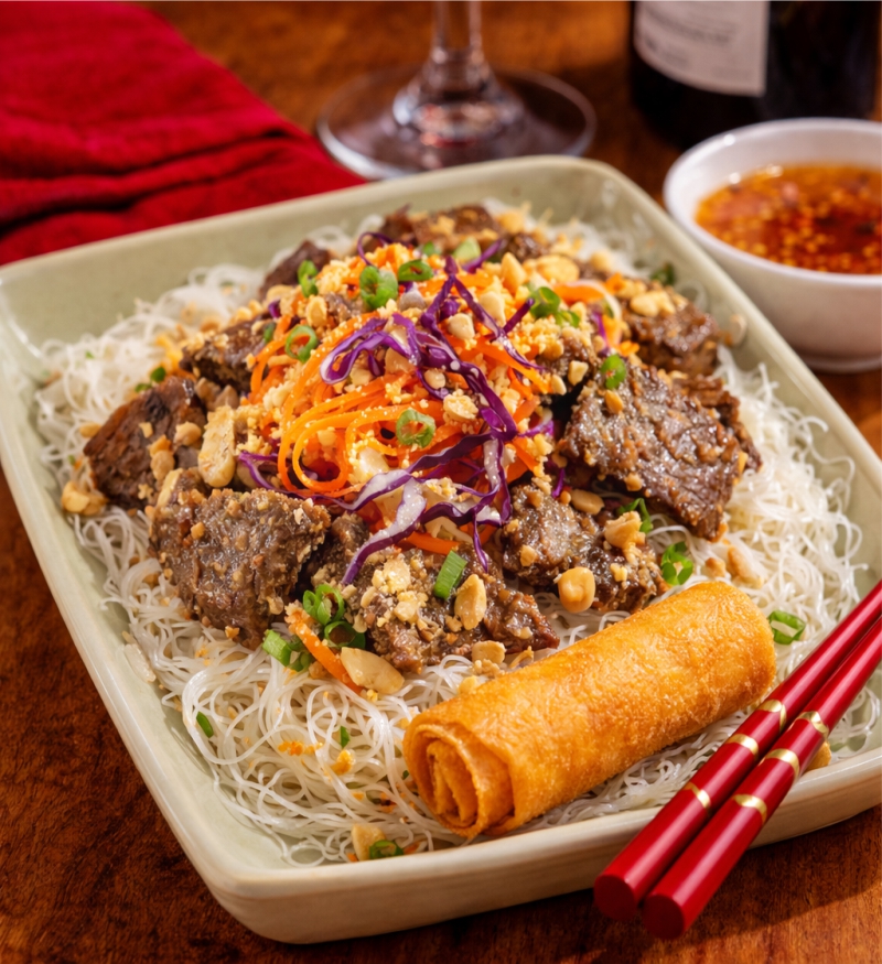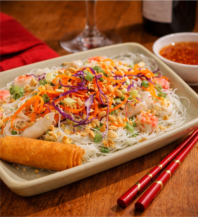 Banh-Bung *Ces plats contiennent des ingrédients à base d’arachides,consultez notre personnel. Banh-Bung à la goberge *Sauté de crabe et oignons, sur vermicelles de riz et laitue, rouleau impérial, arachide moulu et sauce impérialeSautéed crab and onion on rice noodles, ground peanut enhanced salad, served with imperial roll and imperial sauceÀ LA CARTE 21,95 / TABLE D’HÔTE 28,75 Banh-Bung au poulet *Sauté de poulet de grain et oignons, sur vermicelles de riz et laitue, rouleau impérial, arachide moulu et sauce impérialeSautéed free-range chicken and onion on rice noodles, ground peanut enhanced salad, served with imperial roll and imperial sauceÀ LA CARTE 21,95 / TABLE D’HÔTE 28,75 Banh-Bung au boeuf ou crevettes *Sauté de boeuf et oignons, sur vermicelles de riz et laitue, rouleau impérial, sauce impérialeSautéed beef and onion on rice noodles, ground peanut enhanced salad, served with imperial roll and imperial sauceÀ LA CARTE 22,95 / TABLE D’HÔTE 29,75 reserver adresse heures